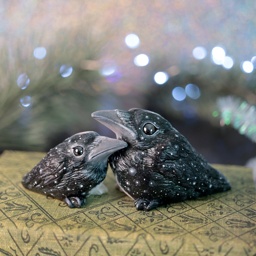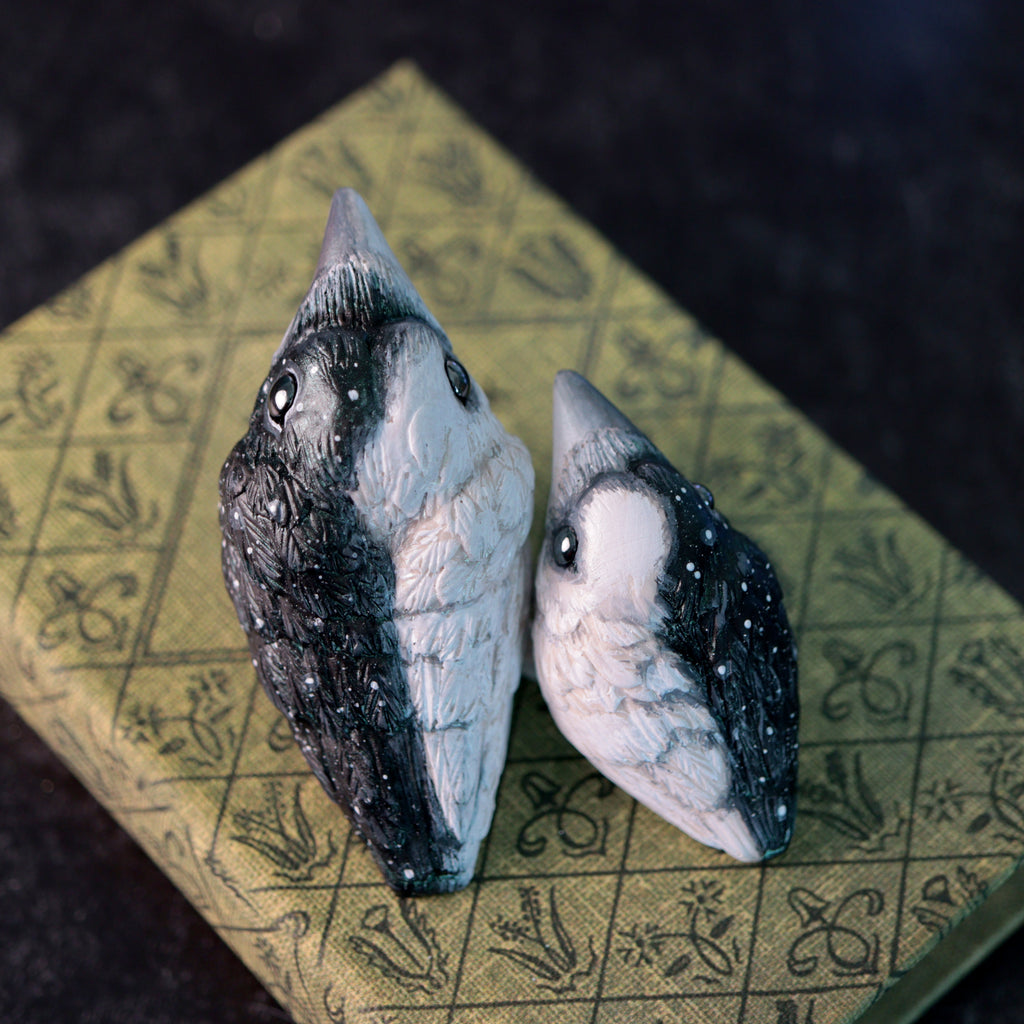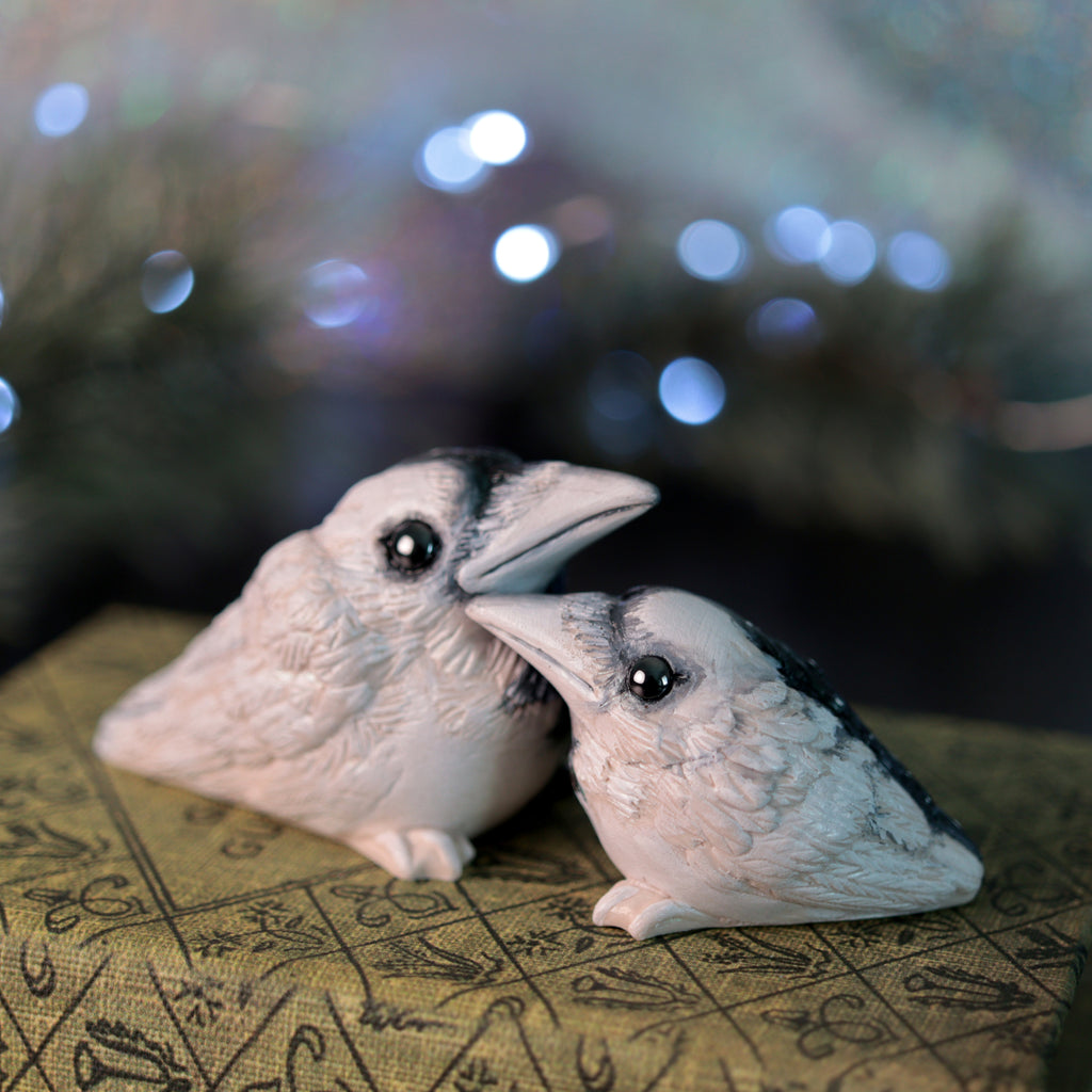 This listing is for the Half White Half Black preorder crow figurine. Choose between large, small, or set ($10 discount).